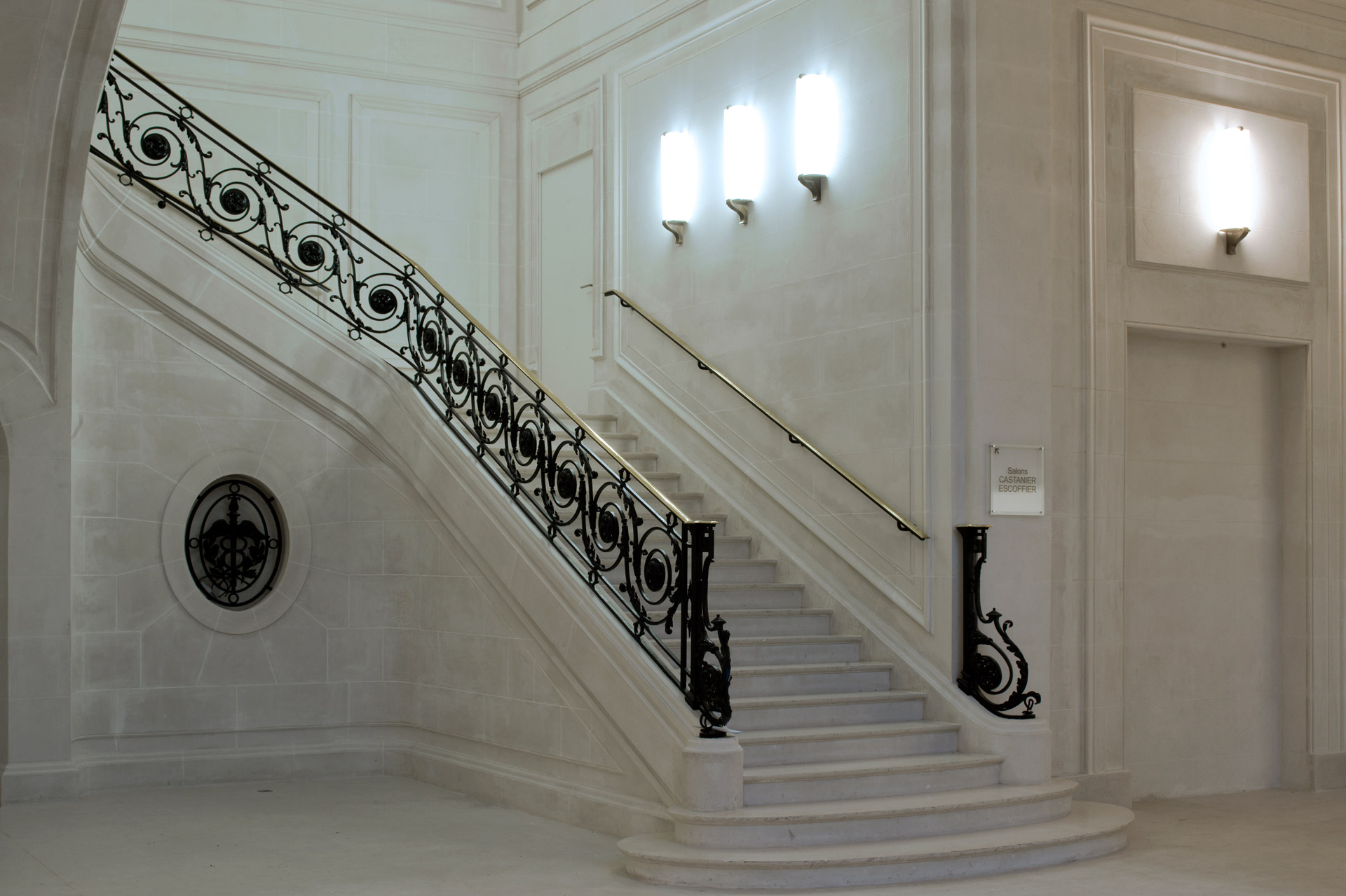 Réinventer un espace monumental Belle-Epoque, avec des matériaux riches aux lignes épurées.