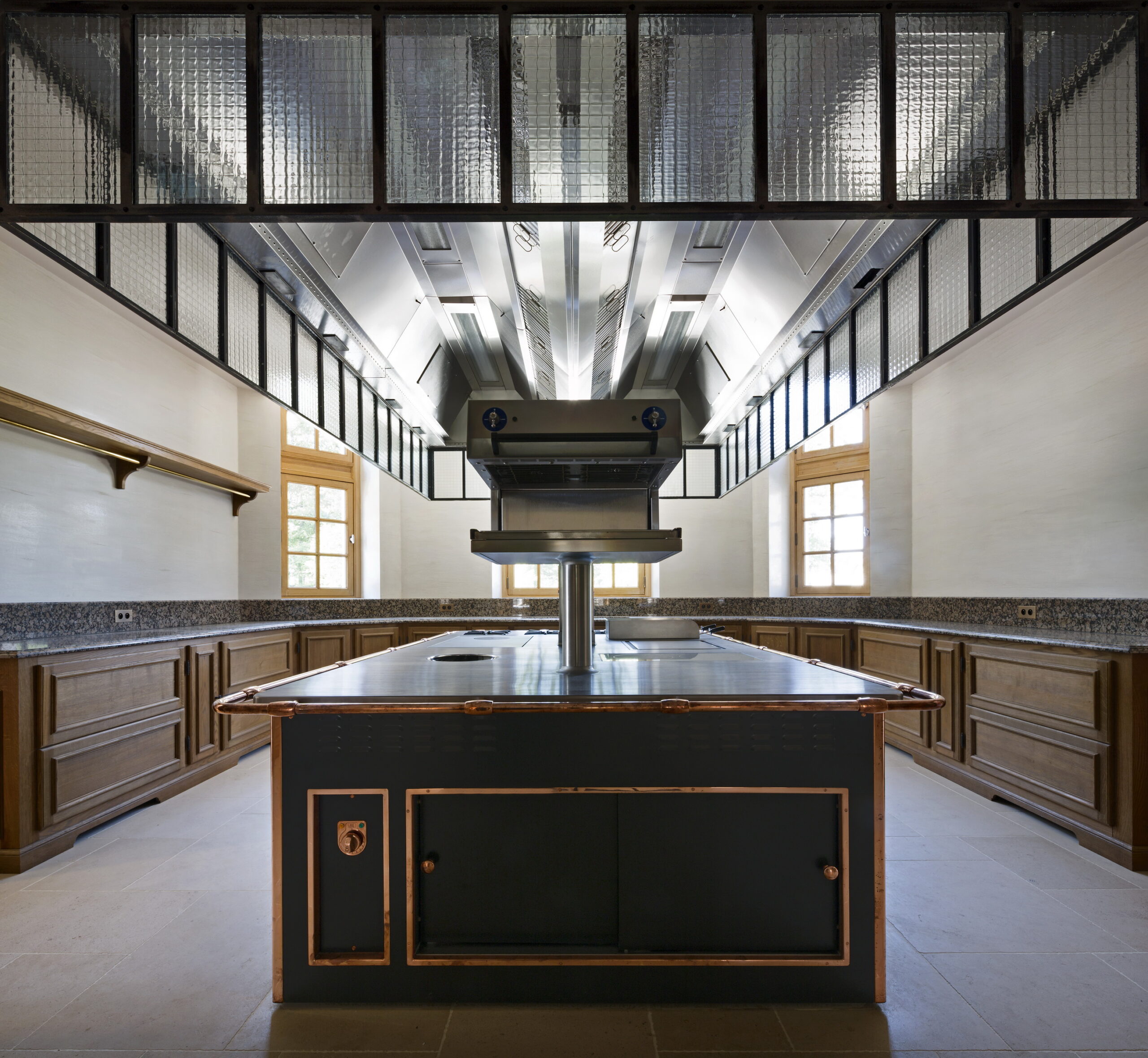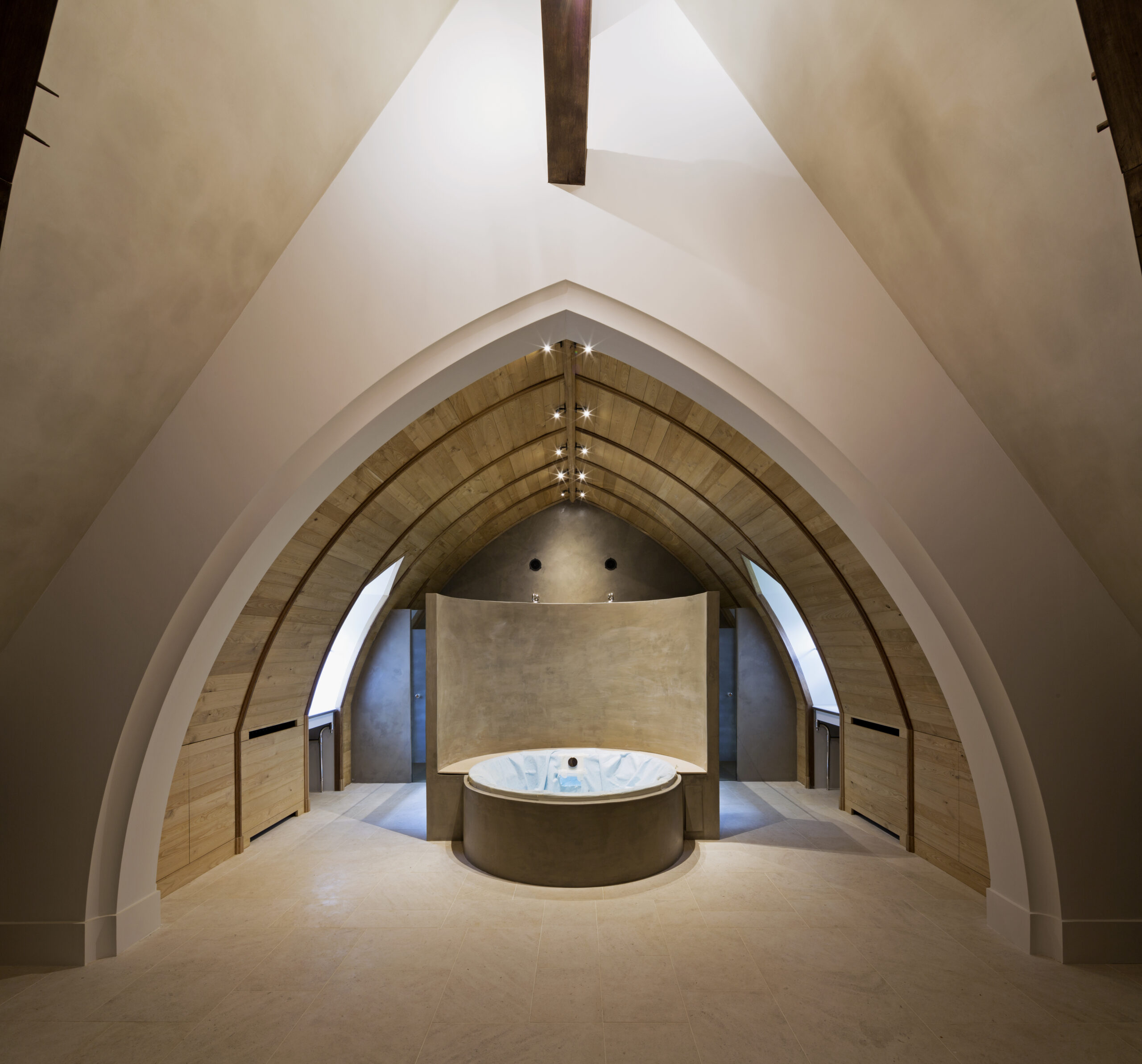 - Le secteur de la cave à vin avec son espace de dégustation, en voûtes d’arêtes.