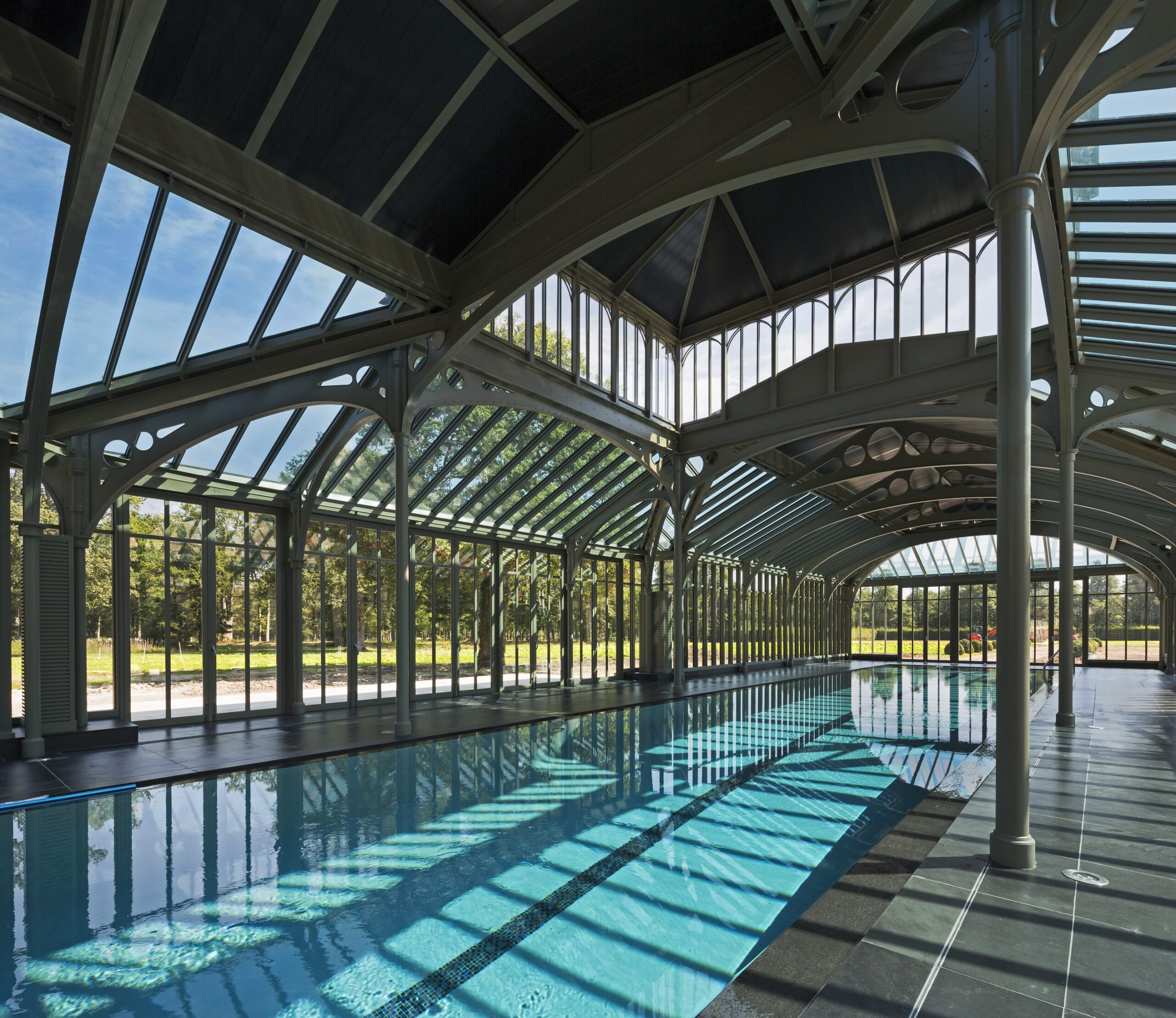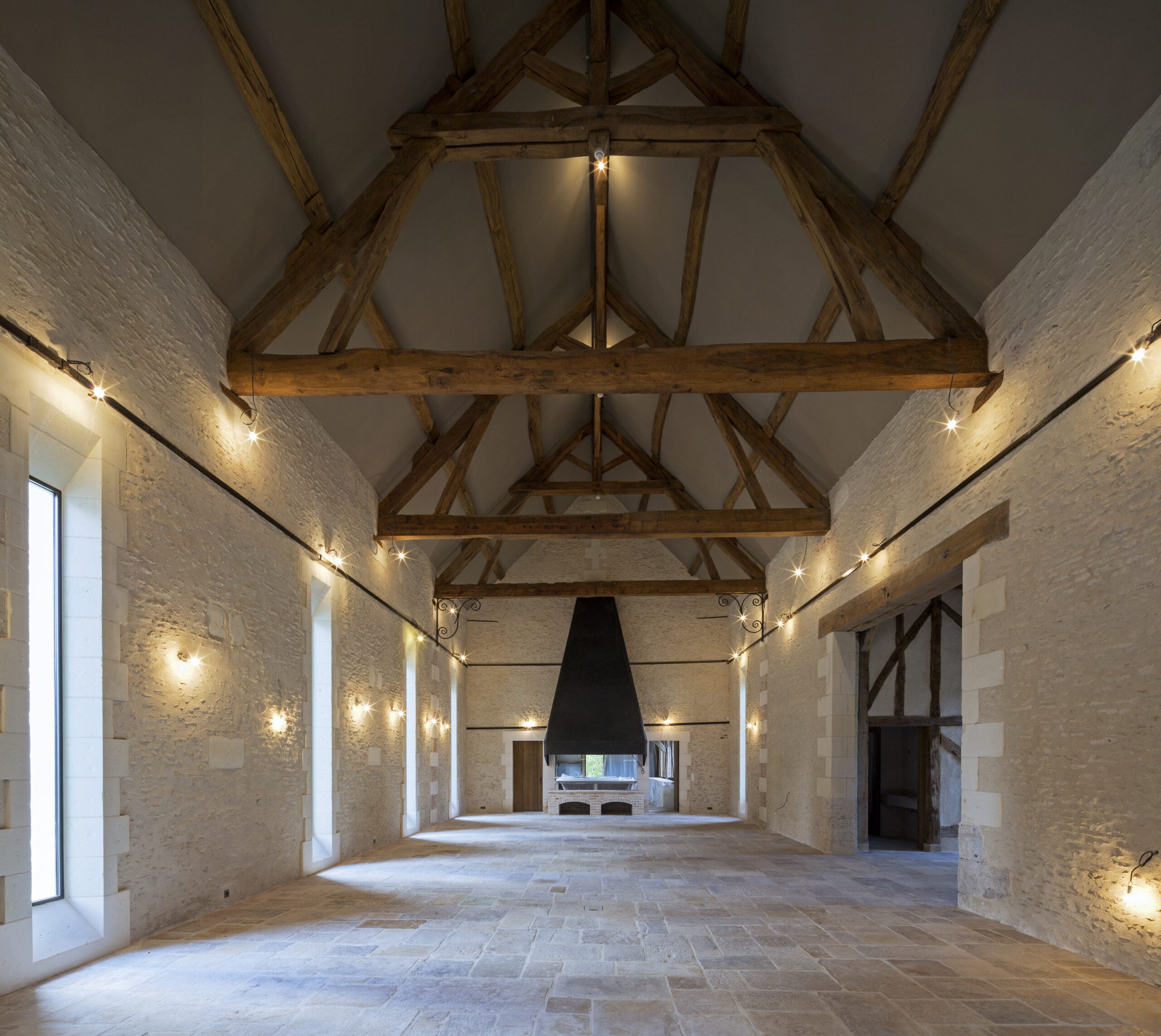 Daté du XVIème et du XIXème siècle, ce château a subi des extensions au début du XXème siècle, chargée de sa réhabilitation notre agence d’architecture a su homogénéiser ces différentes strates constructives. Nous avons recréé une aile ainsi qu’un grand escalier en rotule. Une structure en forme de fer à cheval ainsi qu’une des cours du château ont été reconstruites pour servir les usages déterminés par le propriétaire (chambres, cave, salle de chasse, salons de réception). Les communs du château ont été transformés en spa et une piscine à la fois couverte et ouverte sur la nature a été ajoutée. Enfin, la ferme adjacente a été restaurée afin d’assurer le logement du personnel d’entretien.