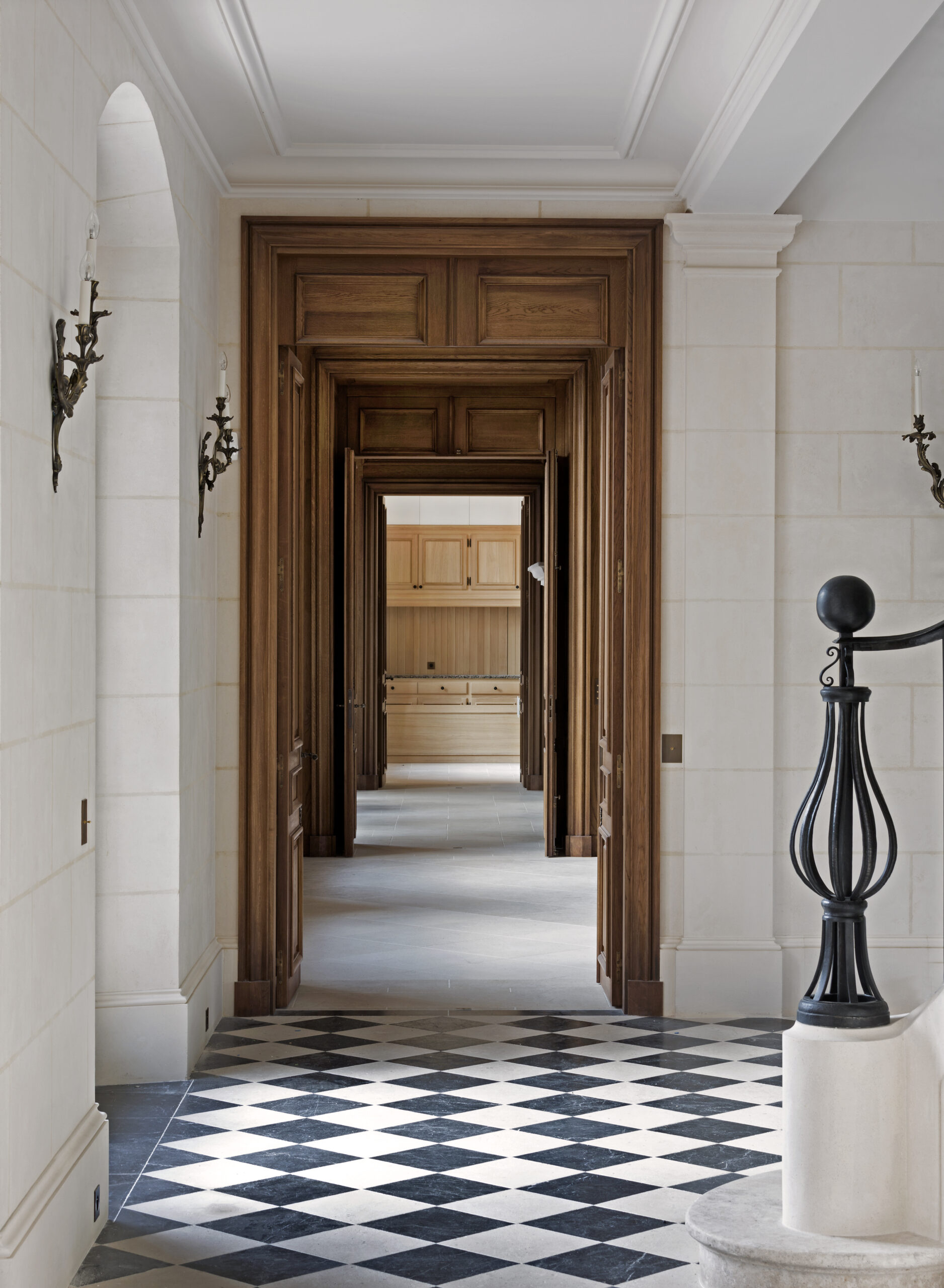 Une large galerie de portraits accessible depuis le hall d’entrée connecte d’une manière privative le fumoir et la grande salle à manger.