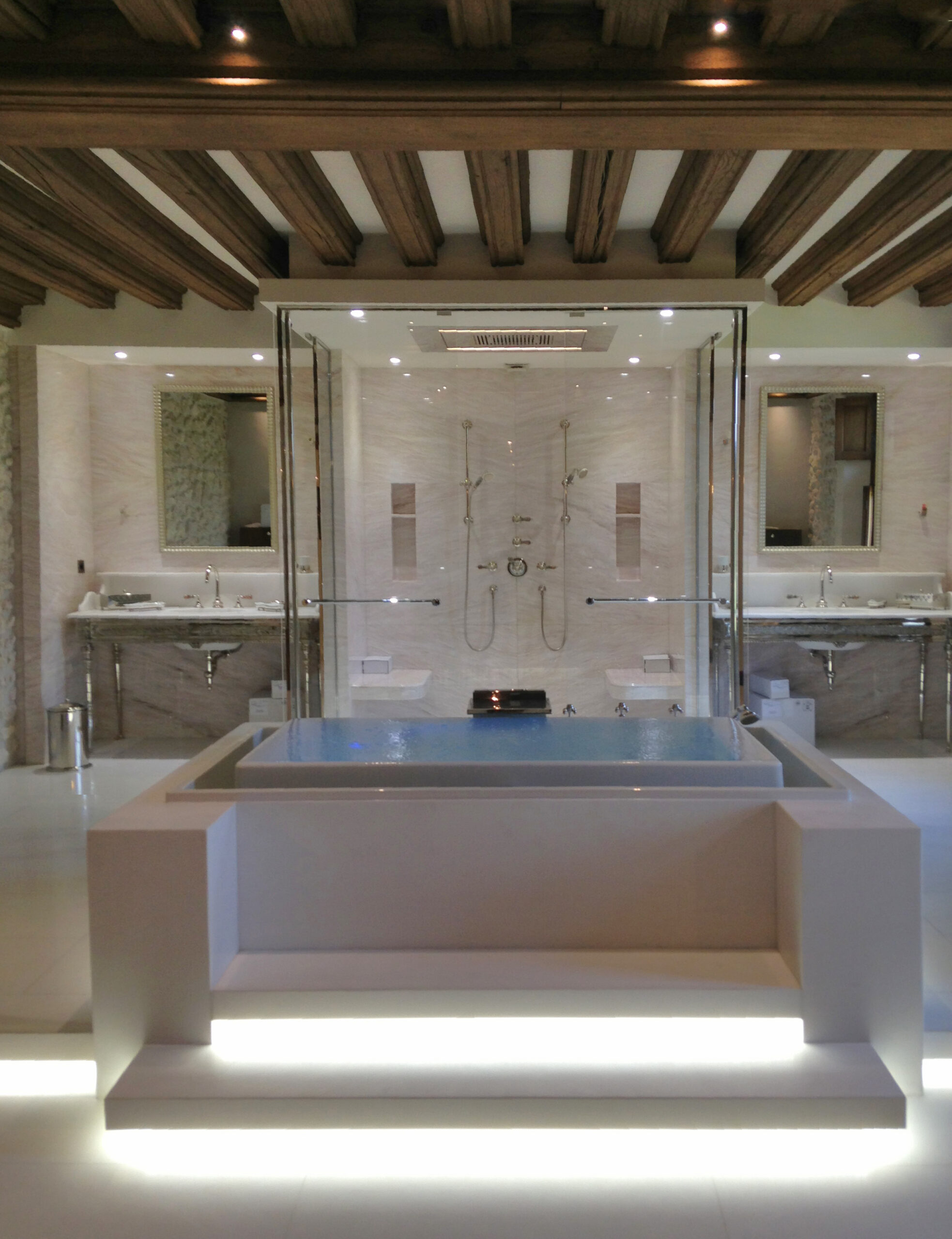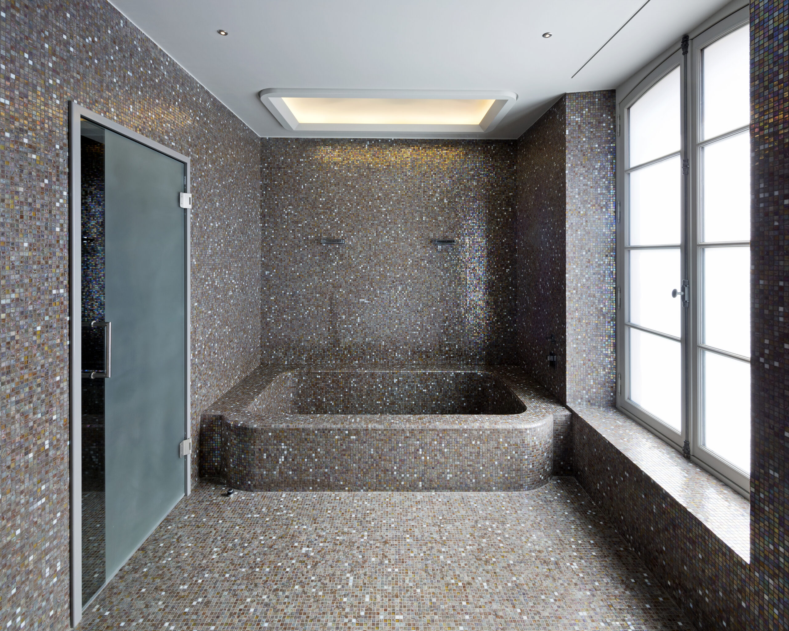 - Le secteur spa, composé d’une piscine, d’un jacuzzi, d’un sauna, d’un hammam et d’une salle de massage. La piscine est ouverte sur un grand patio paysagé, planté de 4 oliviers centenaires.