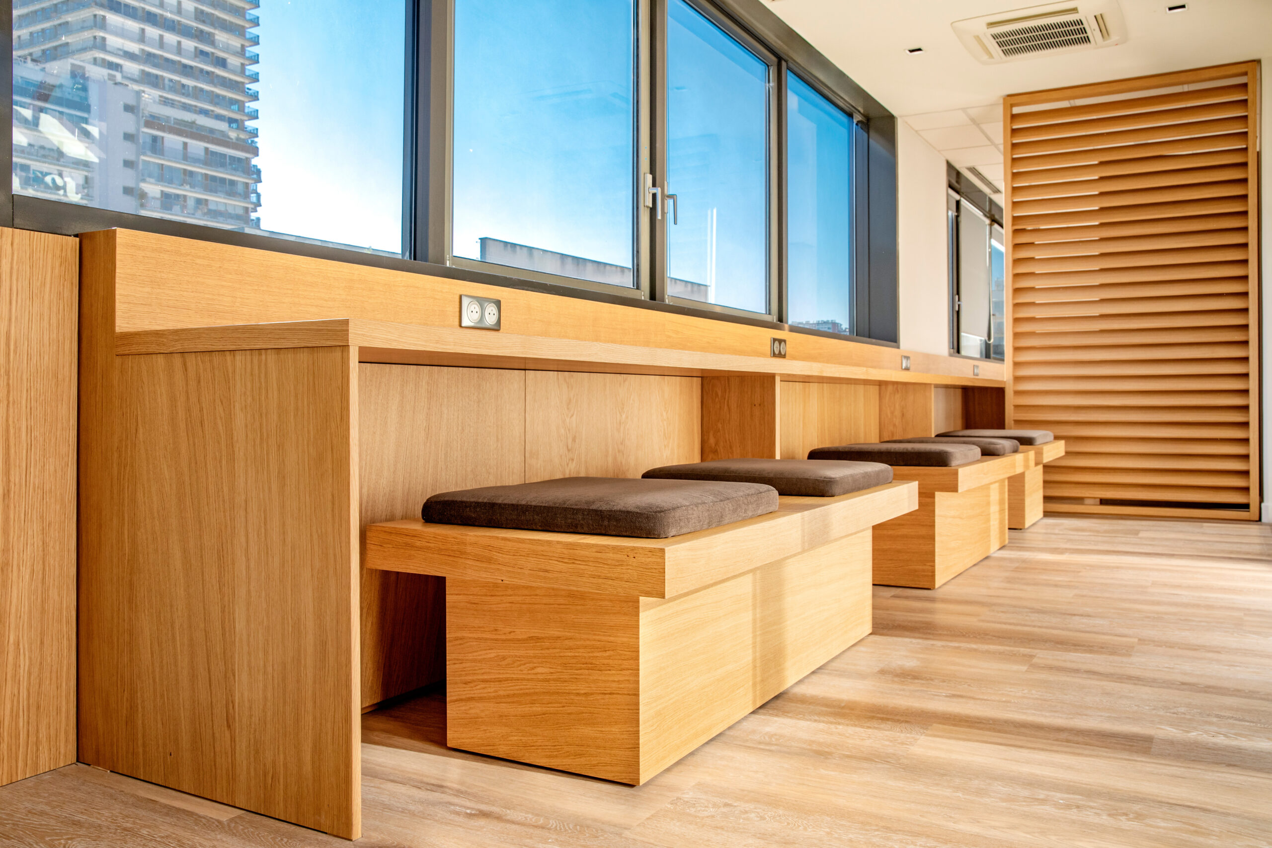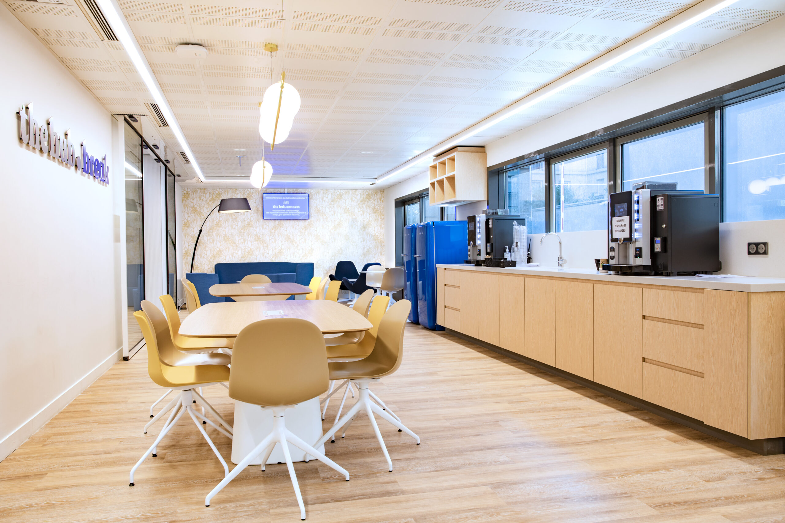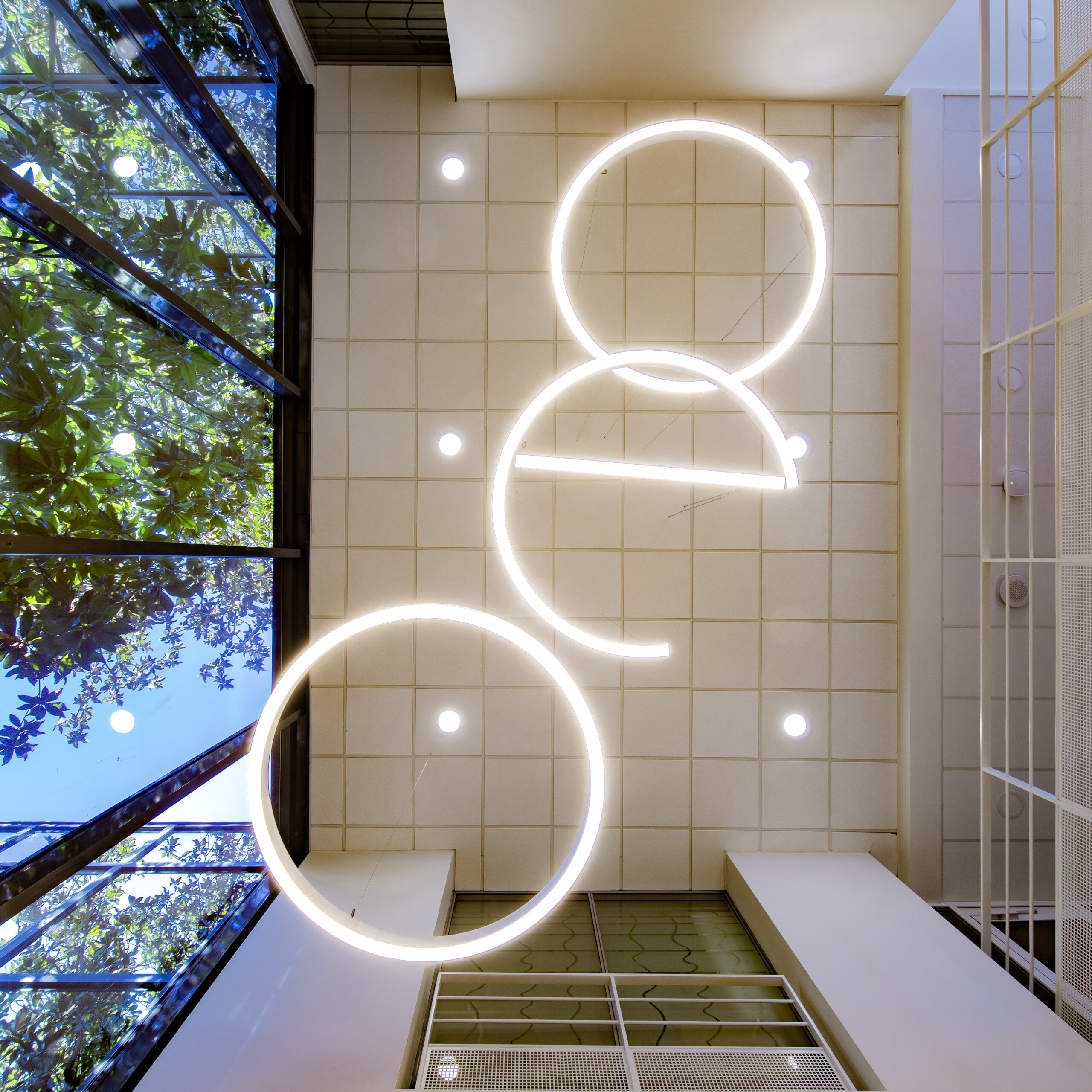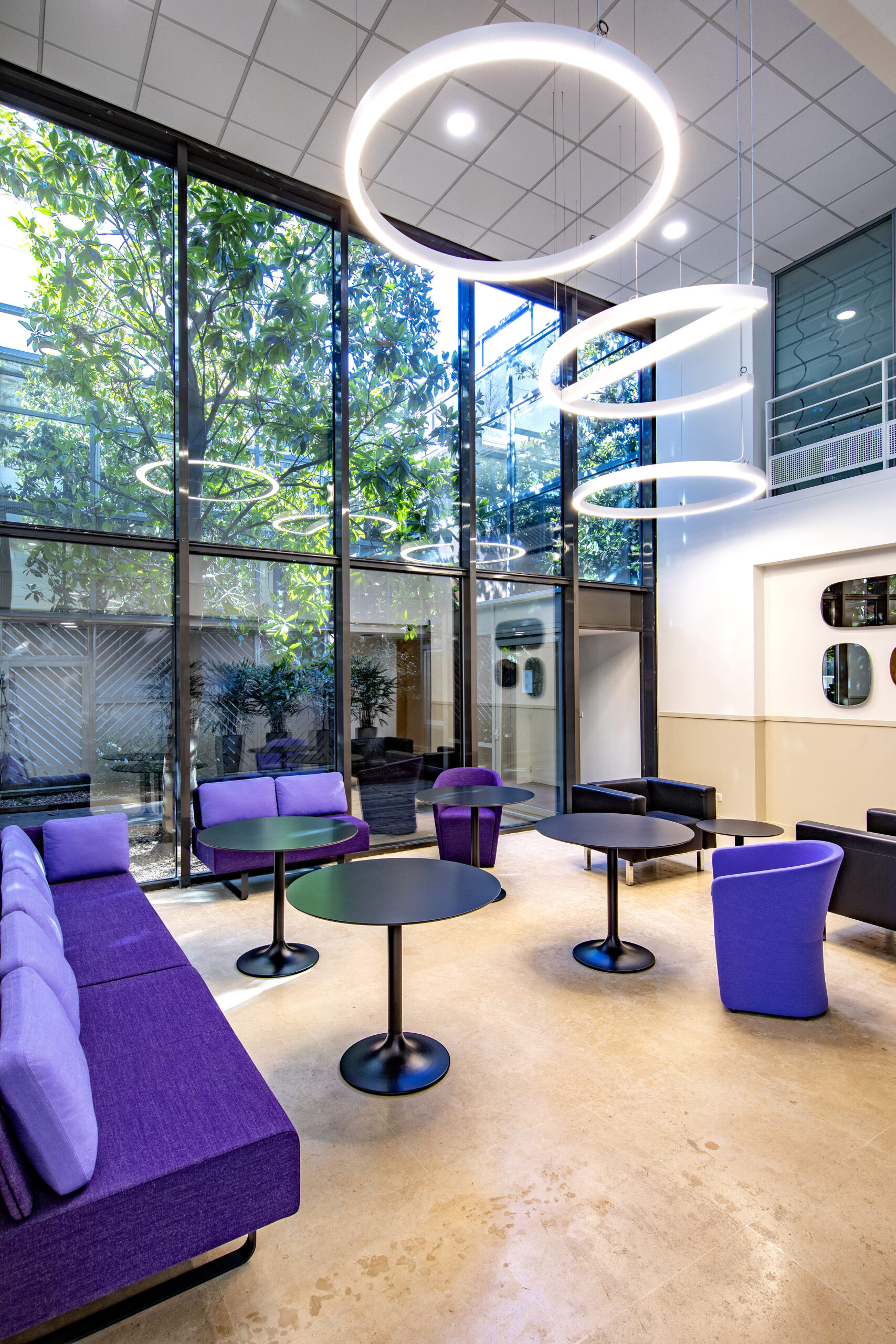 L'escalier dialogue harmonieusement avec l'architecture globale du lieu, où la transparence et la lumière naturelle sont privilégiées. Il contribue à créer une atmosphère propice au bien-être et à la créativité.