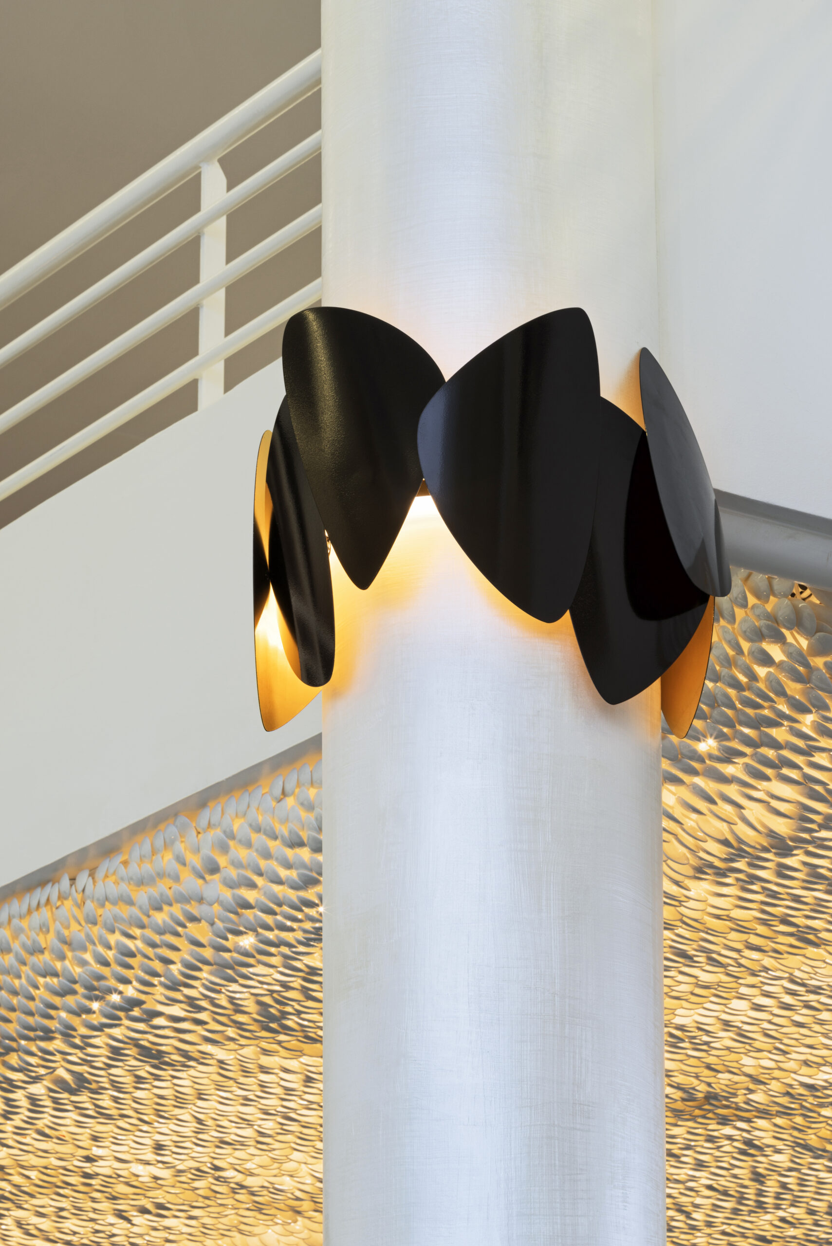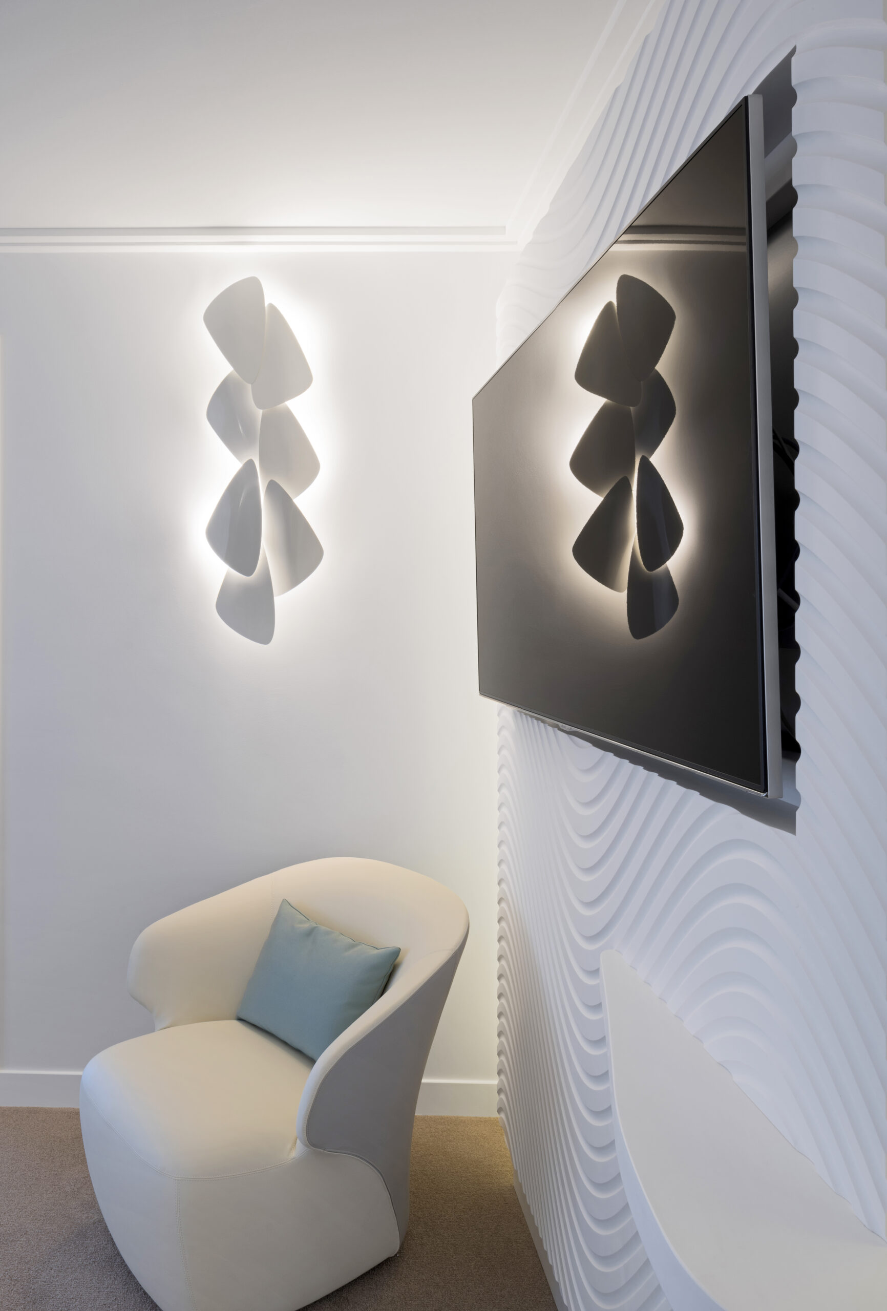 Évoquant des formes et des textures qui semblent flotter au-dessus, cette création offre une expérience visuelle unique et apaisante. Inspiré des habitats aquatiques, chaque détail est soigneusement pensé pour susciter la contemplation et l'évasion. Cette œuvre d'art transforme l'espace en une véritable escapade sous-marine, intégrant de manière poétique l'architecture à la nature. Les formes organiques imitent la tranquillité de la vie marine, favorisant un sentiment de bien-être et de connexion avec la nature. Cette approche biophilique stimule une interaction sensorielle, offrant aux visiteurs une expérience immersive qui encourage la relaxation et l'émerveillement. Aliénor Bechu démontre ainsi le pouvoir du design intérieur pour influencer positivement notre état d'esprit et notre bien-être, en nous rapprochant des merveilles naturelles de la mer.