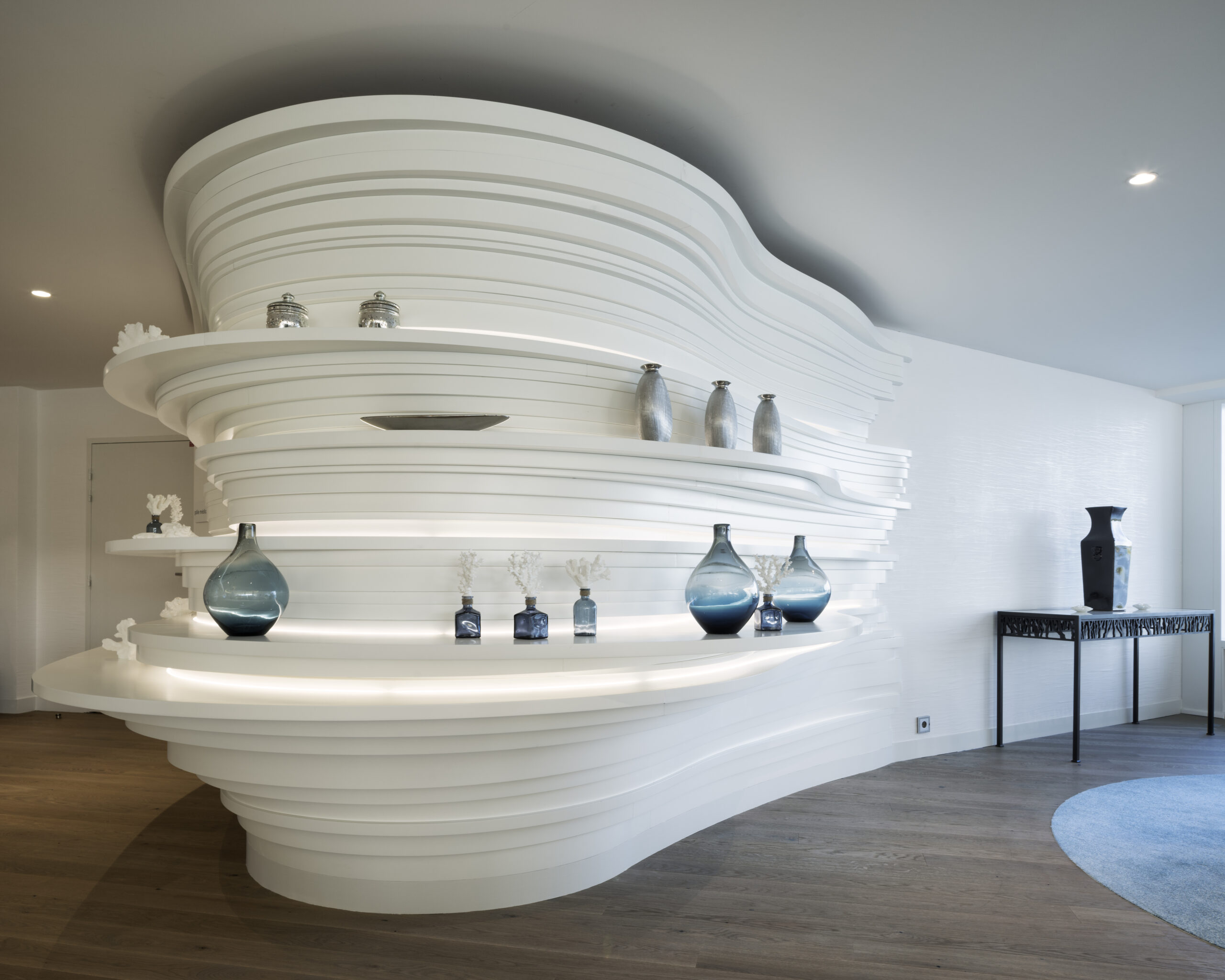 Pour la boutique de l'hôtel Miramar La Cigale, Volume ABC prolonge l'expérience immersive marine dans un espace commercial luxueux. Cette création s'inscrit dans la continuité de l'univers sous-marin développé pour l'ensemble de l'établissement.