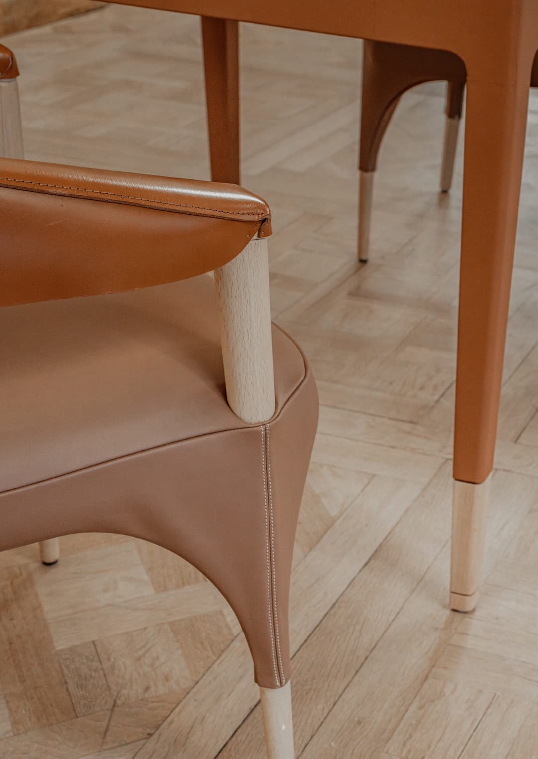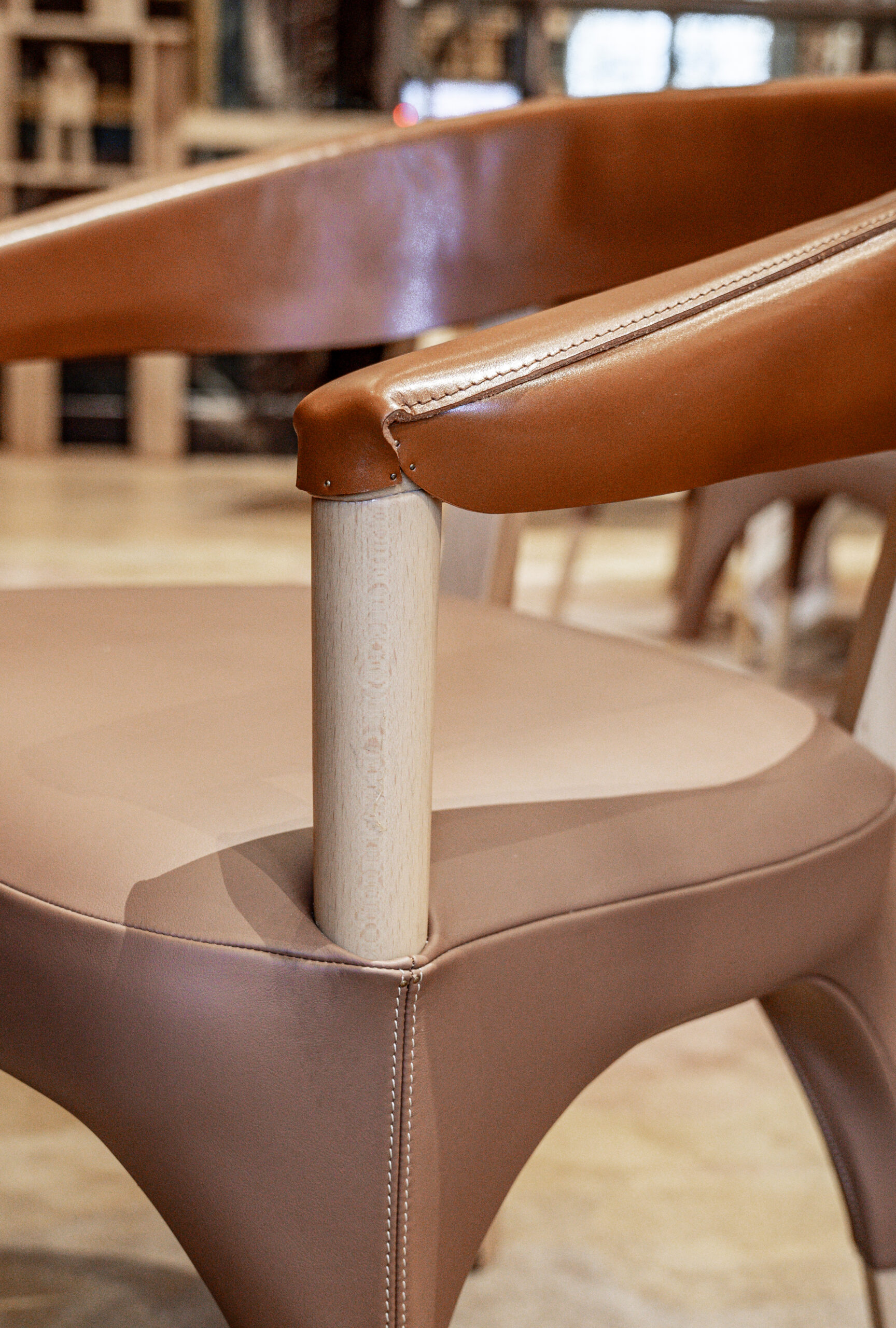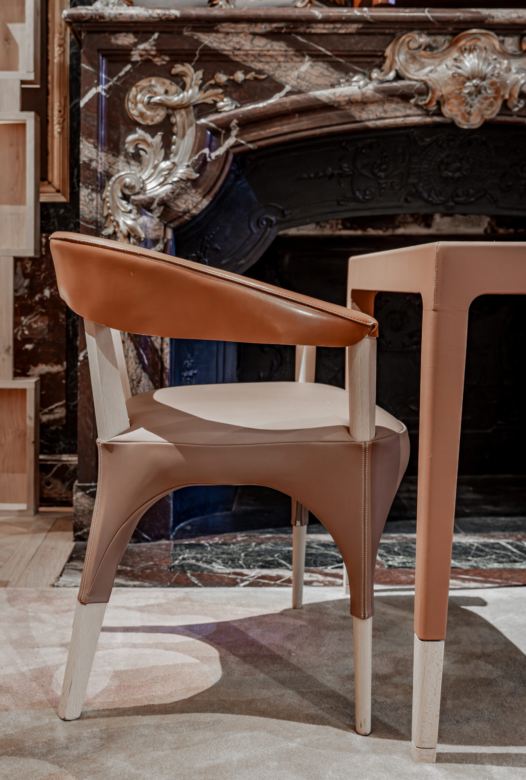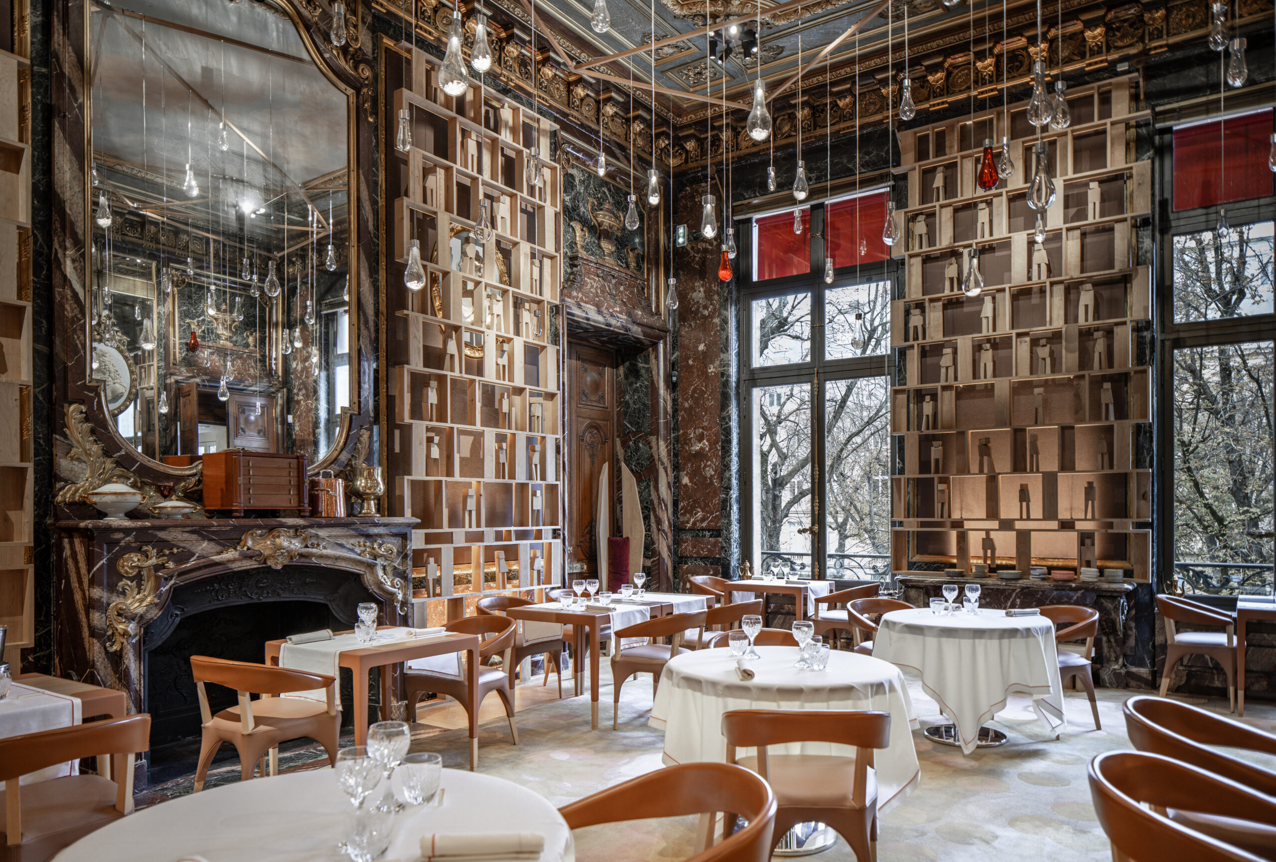 L'approche architecturale joue sur le contraste entre le brut et le raffiné. Les matériaux naturels et bio-sourcés - bois, cuir, céramique, chanvre - créent un dialogue avec le raffinement du cristal Baccarat. Les textures brutes rappellent le travail du chef étoilé, tandis que les éléments en cristal apportent une touche de préciosité.